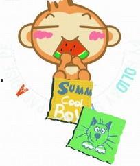 这张插图里的猴子,简直就是一个活宝。它坐在一片绿油油的草地上,手里捧着一个大西瓜,嘴巴张得大大的,仿佛在享受着夏日的清凉。猴子的表情超级可爱,眼睛弯成一条线,嘴角上扬,好像在说:“这瓜真甜啊!”
