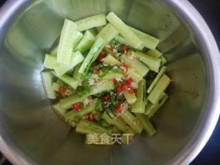 5. 冷藏:将拌匀的黄瓜条放入冰箱冷藏,腌制2小时以上,让黄瓜条充分入味。
